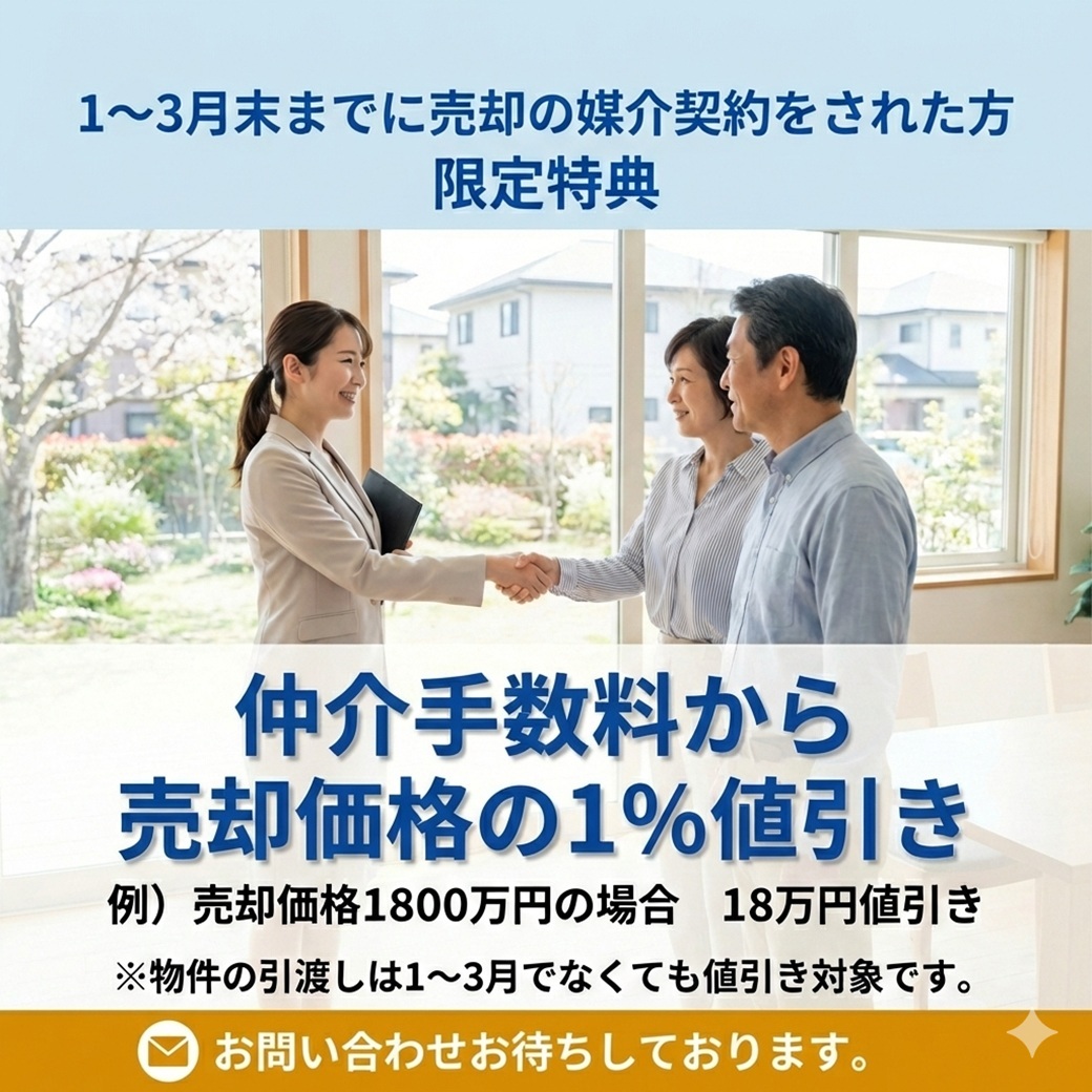 その仲介手数料を2月、3月に当社と売却の媒介契約書を締結していただくと、